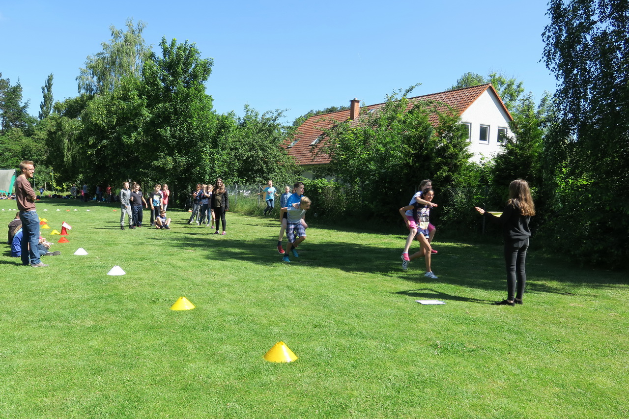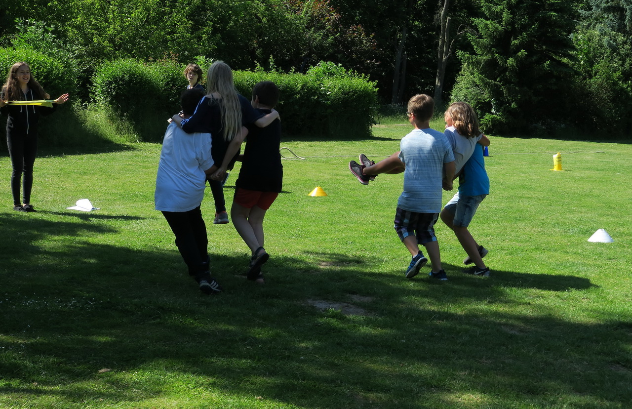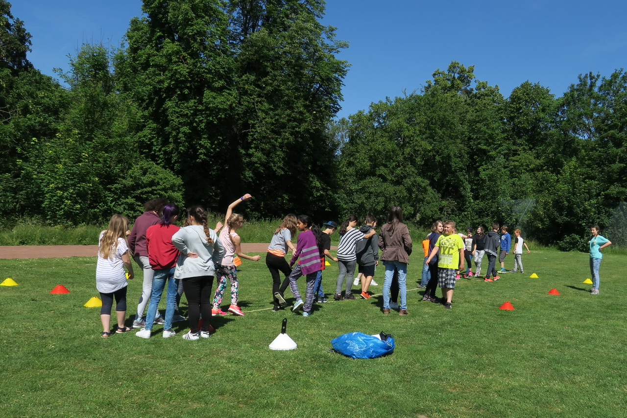 An verschiedenen Spiel-Stationen wie z.B. Tauziehen oder Wer bin ich? konnten die Klassen ihr Können beweisen. Eine abschließende Wasserschlacht sorgte für eine kleine Abkühlung und ausgelassene Stimmung.