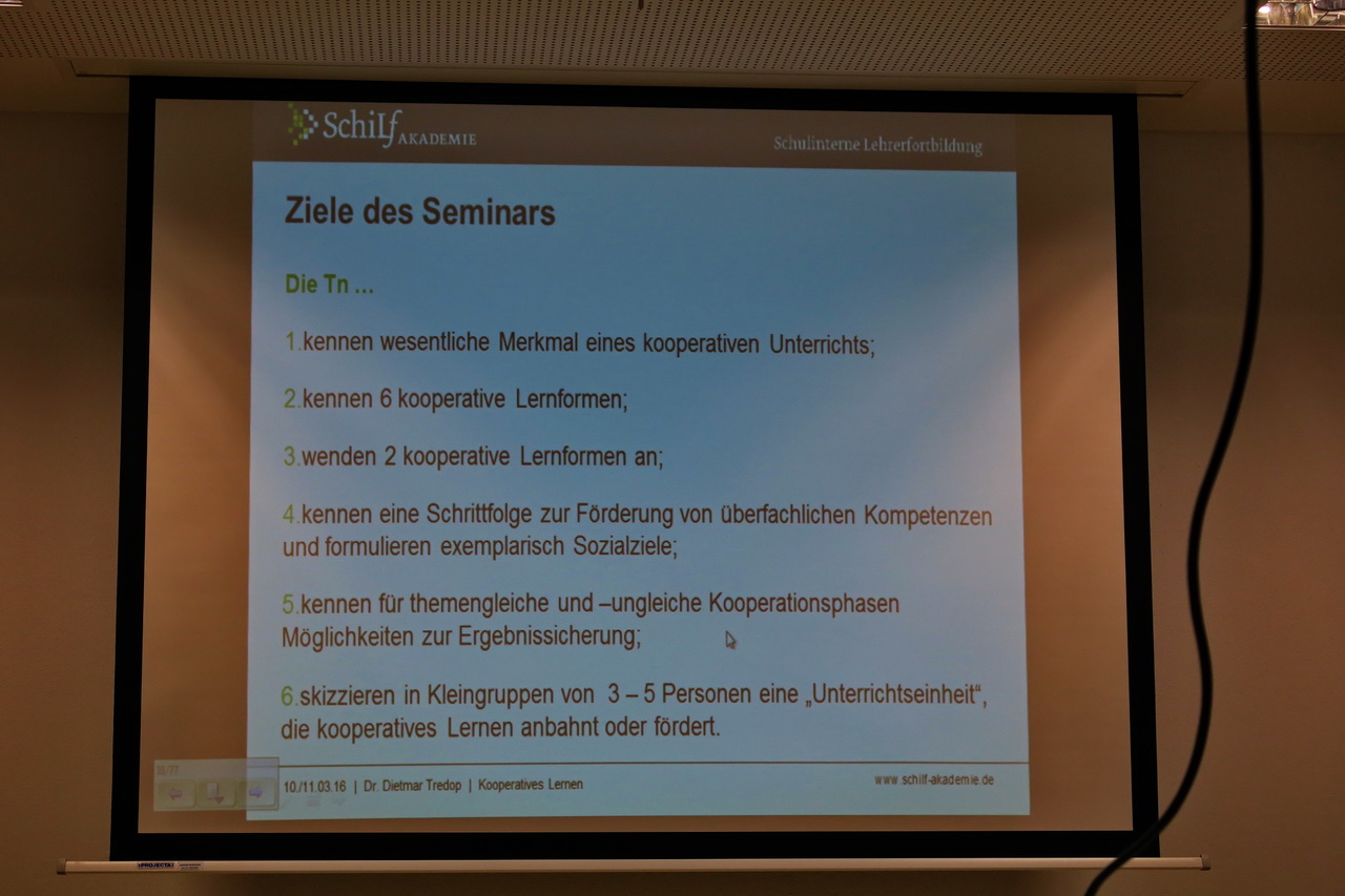 Das Kollegium befasste sich intensiv mit dem Thema "Kooperatives Lernen durch individuelles Lernen und kooperatives Arbeiten".