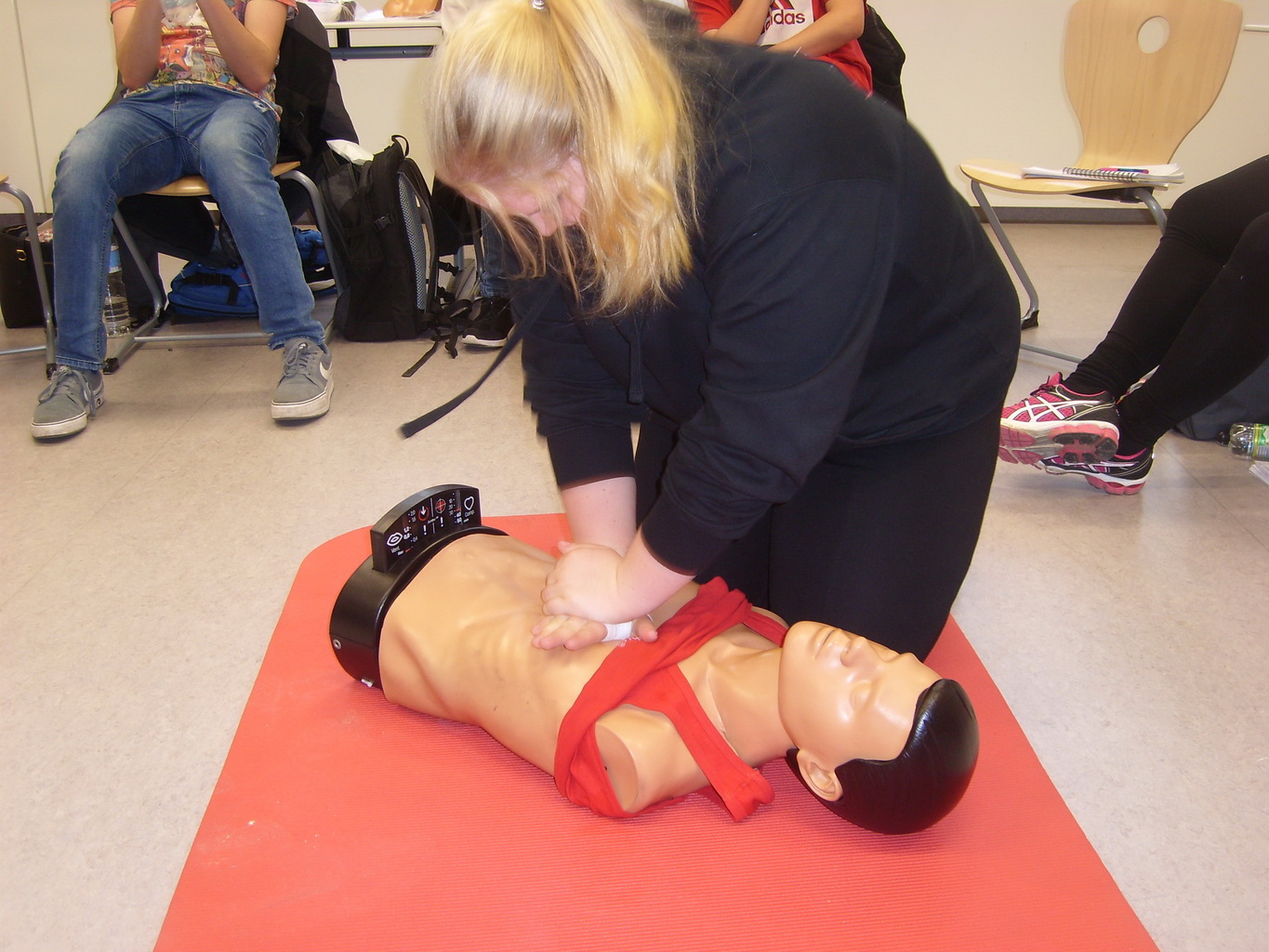 Ihre Erste-Hilfe-Ausbildung haben die Schülerinnen und Schüler am Samstag, den 14.11.2015, erfolgreich bei der DRK-Ausbilderin Melanie Niestrop abgeschlossen.