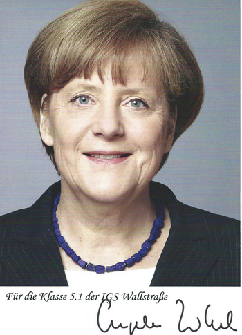 Aus dem Bundeskanzleramt kam nun viel Lob für die Kinder der IGS Wallstraße. Sie hätte sich intensiv mit einem so wichtigen Thema beschäftigt. Als besondere Belohnung bekam die Klasse ein persönliches Bild mit einer Unterschrift von Angela Merkel. Die Schüler der Klassen 5.1 und 5.3 hatten im März an das Bundeskanzleramt geschrieben.
