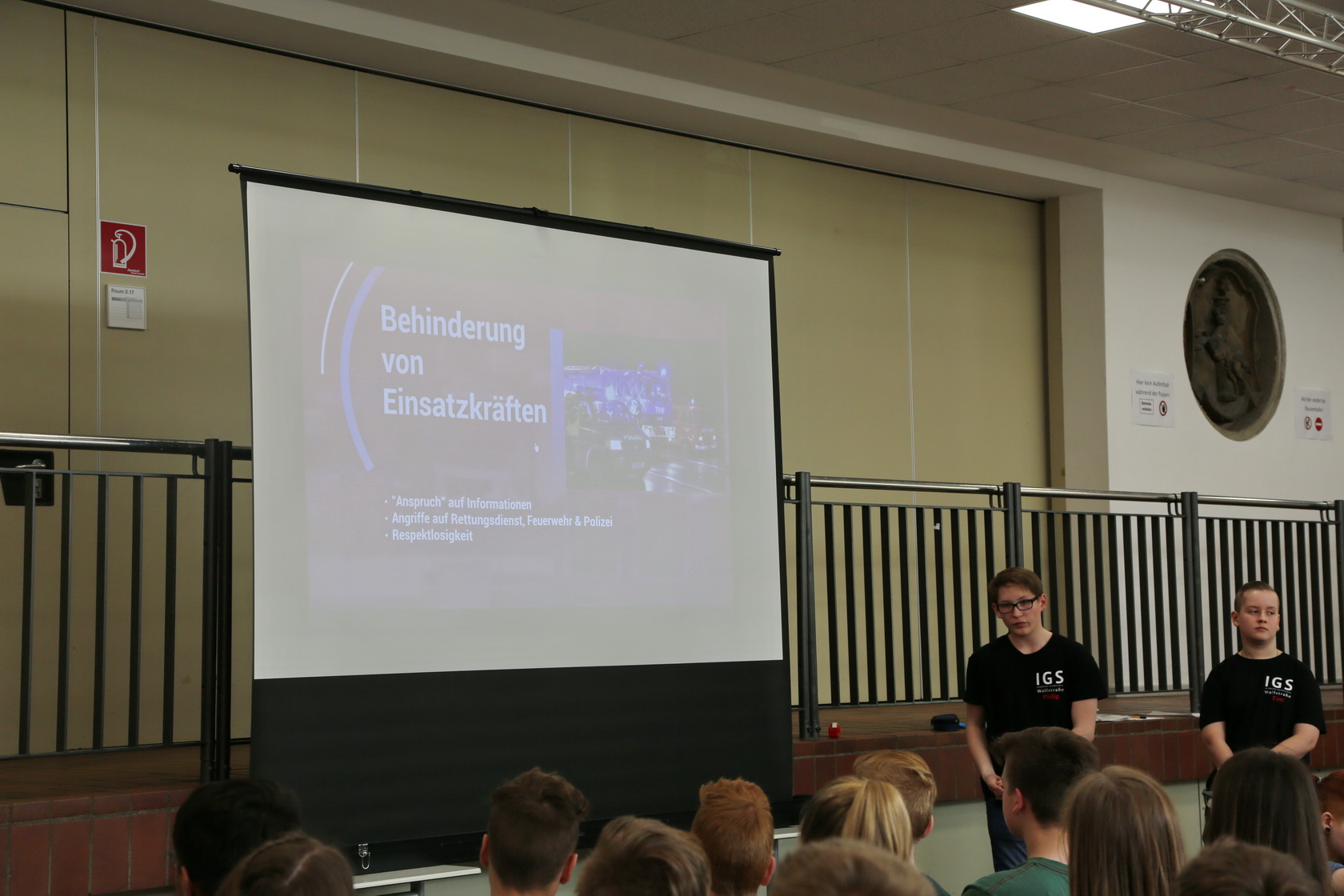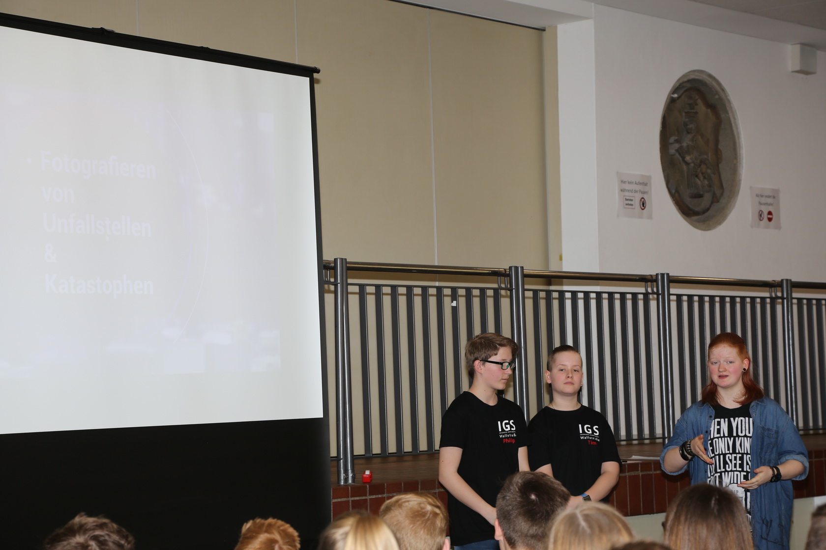 Am Mittwoch, den 18.04.2018, fand in der Pausenhalle der IGS Wallstraße für die Jahrgänge 5 bis 10 die „Aktion gegen Gaffen“ statt.