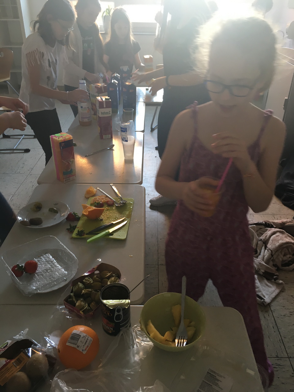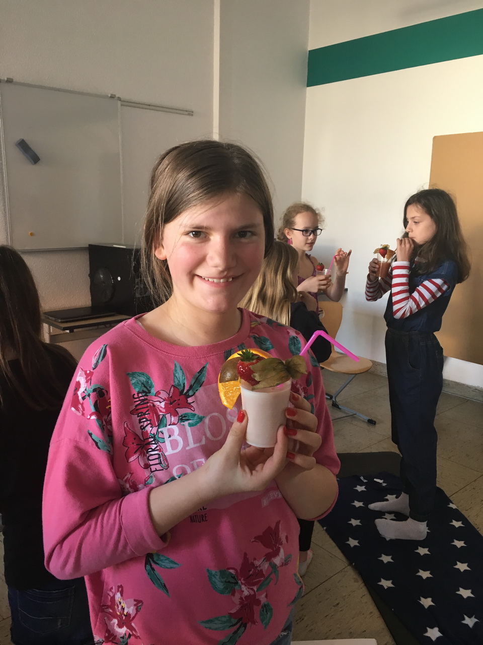 Nachdem wir, wie jeden Donnerstag, wieder eine Yoga-good-morning-Einheit und eine Traumreise hinter uns gebracht haben, ließen wir es uns bei selbstgemixten, gesunden Smoothies gut gehen und auch das Wetter draußen ließ ein bisschen Hawaii-Chill-Stimmung aufkommen.