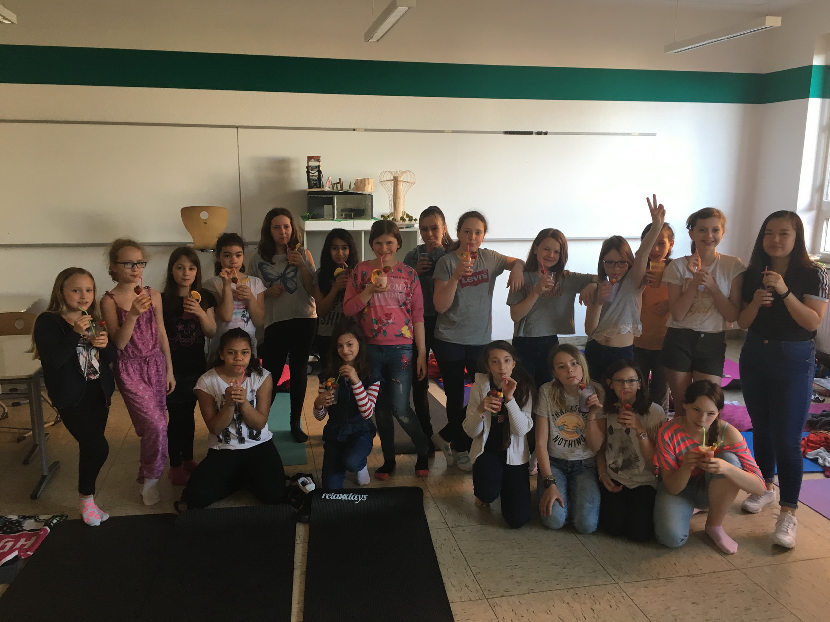 In der Mädchen-AG können wir Vieles, was uns bewegt, besprechen, machen tolle Aktionen wie diese hier, entspannen, quasseln, sind kreativ und haben uns einfach gern!
