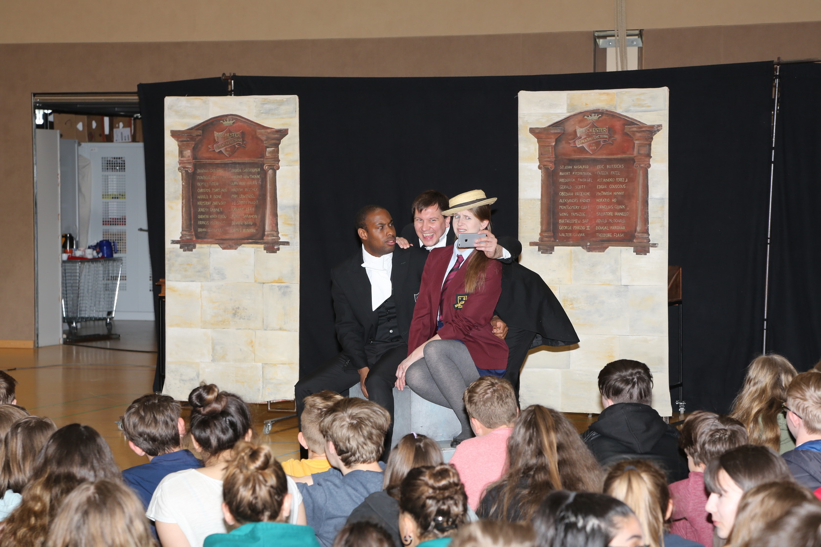 Im Anschluß an die Vorstellungen hatten die Schülerinnen und Schüler die Gelegenheit sich mit den Schauspielern zu unterhalten und Fragen zu stellen. Eine gute Gelegenheit das eigene Englisch auszuprobieren, die auch aktiv genutzt wurde.