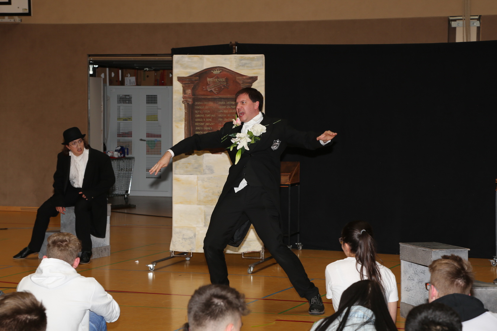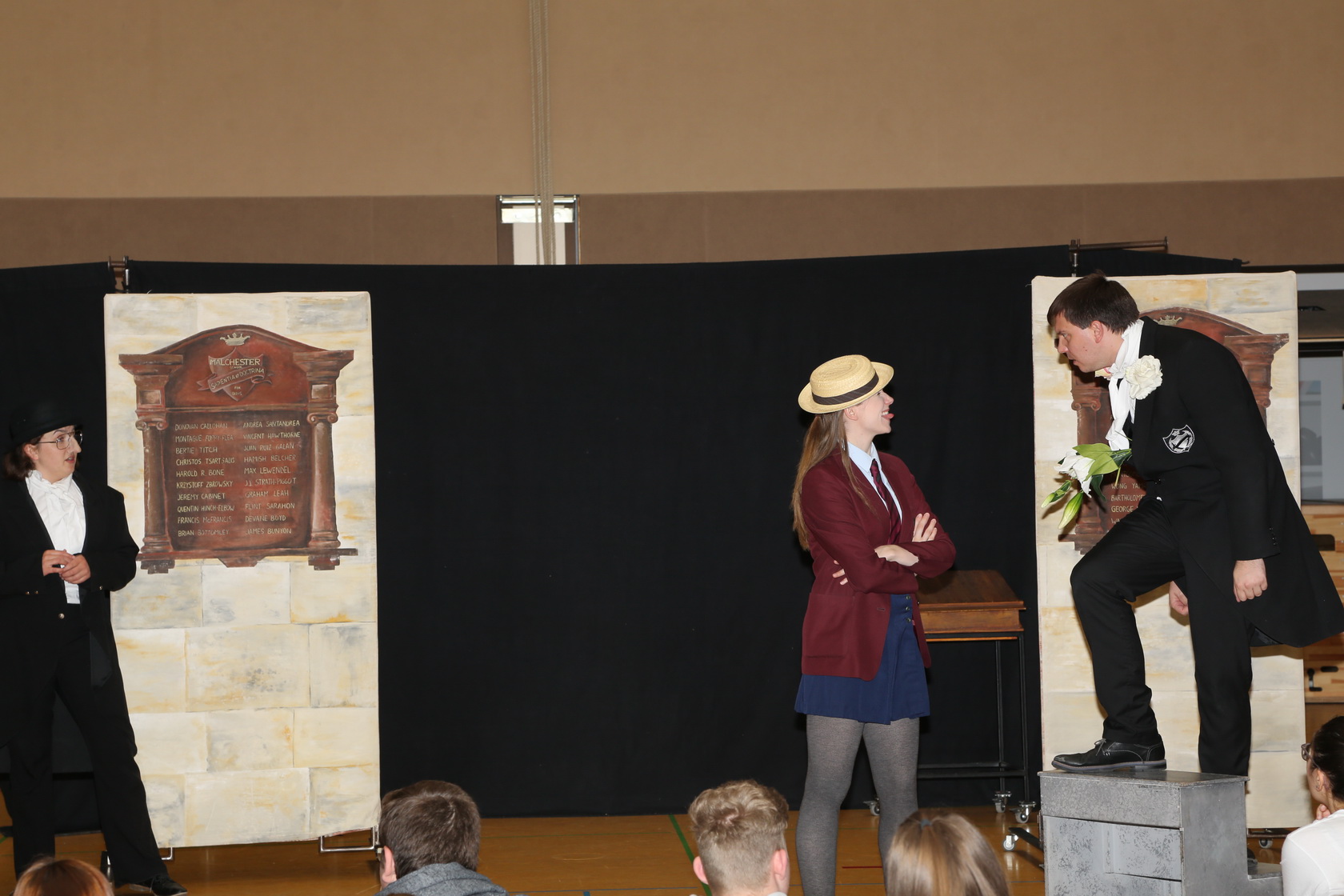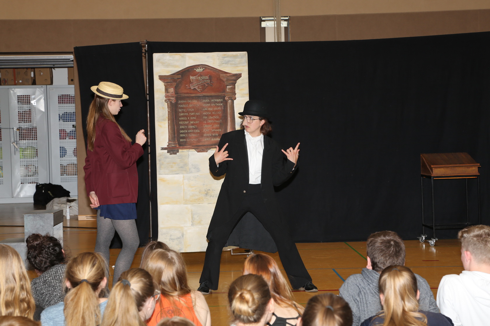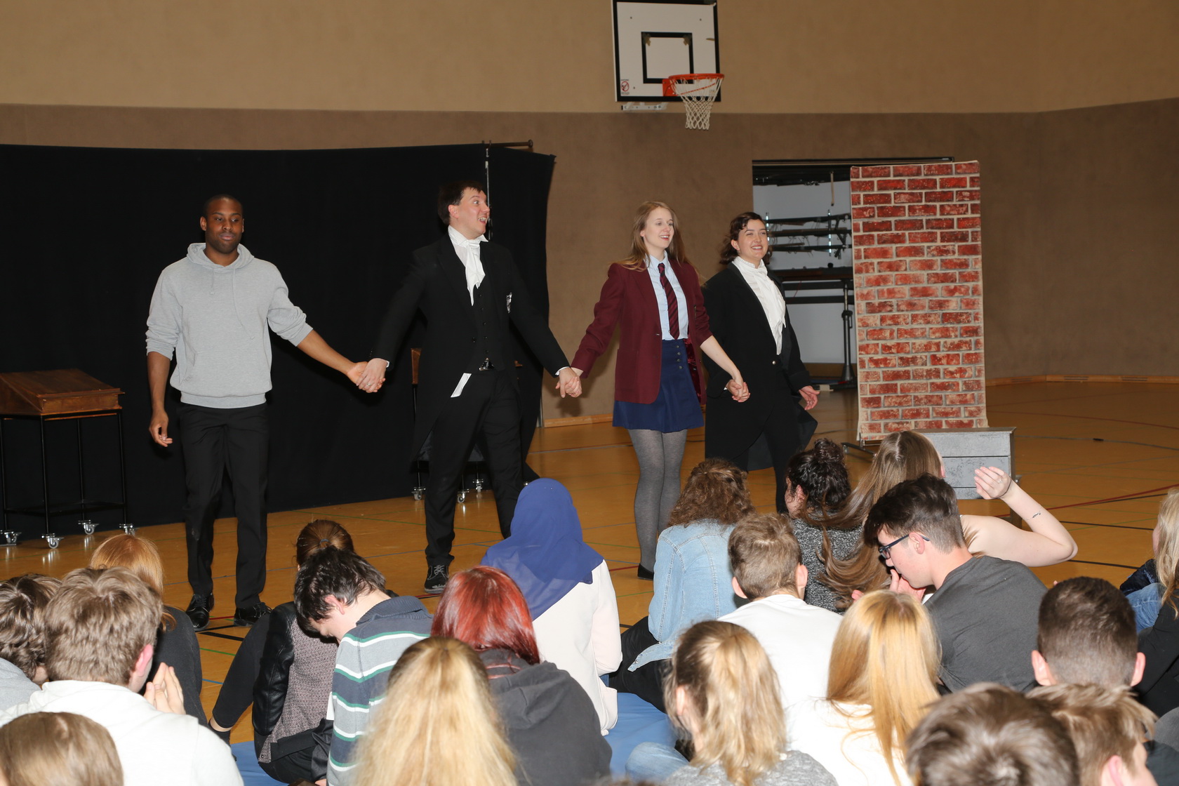 Für die Jahrgänge 7-10 gab es das Stück „Two Gentlemen“, welches von der Freundschaft zweier Schüler handelt, die sich beide in die Tochter ihres Schulleiters verlieben. Eine Adaption von Shakespeare`s „Zwei Edelmänner von Verona“.