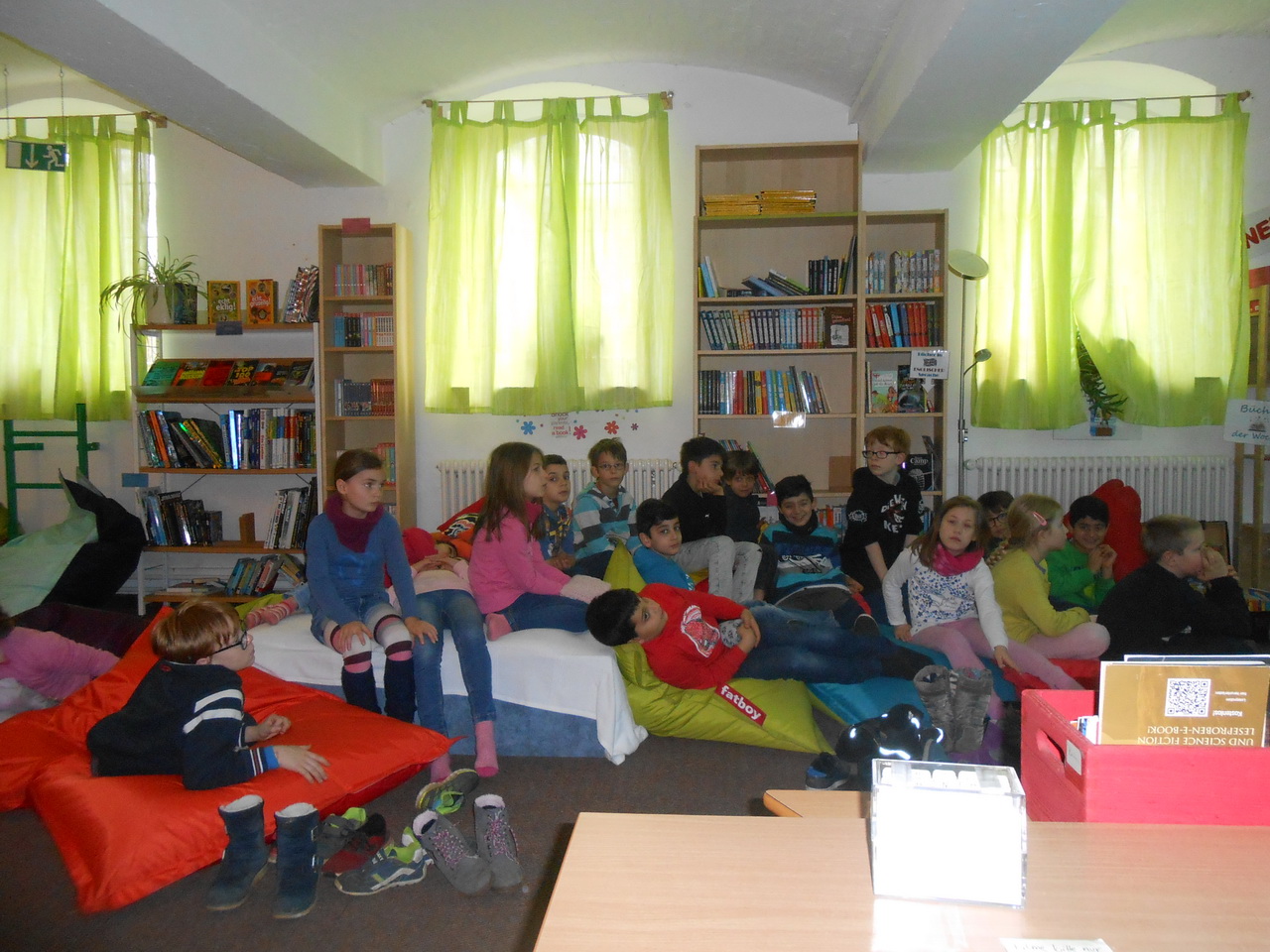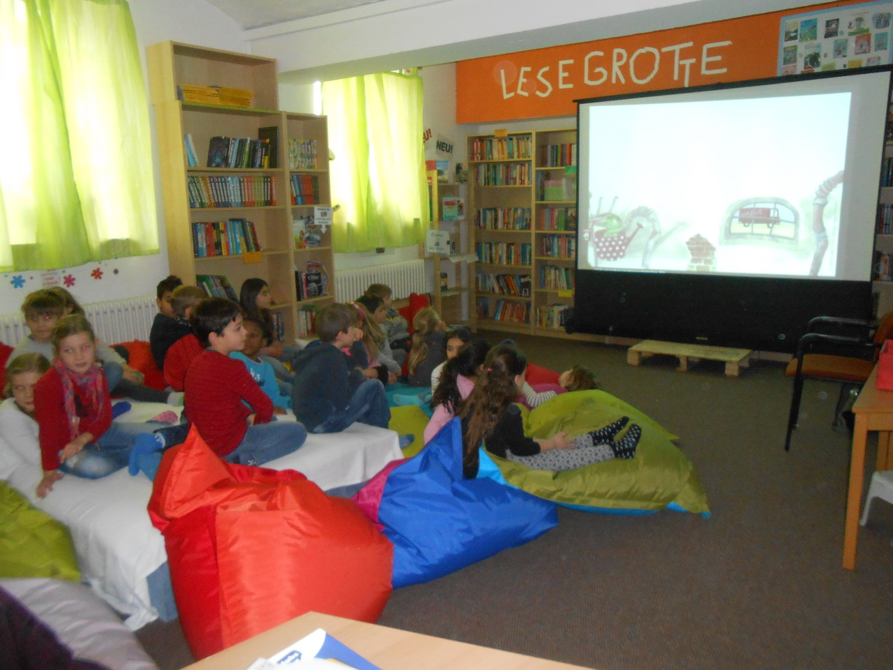 Der Aktionstag folgt der Idee: Jeder, der Spaß am Vorlesen hat, liest an diesem Tag anderen vor. Der Leseclub der IGS Wallstraße beteilgte sich auch in diesem Jahr wieder und lud die Klassen 2a, 2b und 2c der Grundschule Karlstraße zu einem Bilderbuchkino in die Lesegrotte ein.