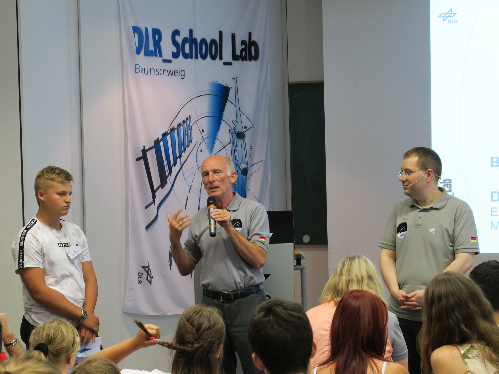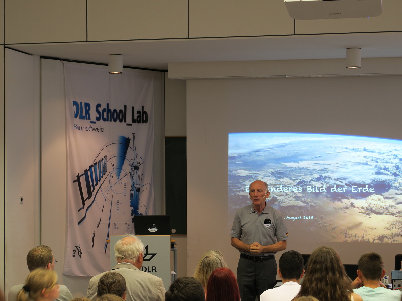 Frank Fischer, der Leiter des DLR_School_Labs Braunschweig, hat im Vorfeld diese Schulen besucht, um den Jugendlichen Anregungen für ihre Fragen an den berühmten Astronauten zu geben.