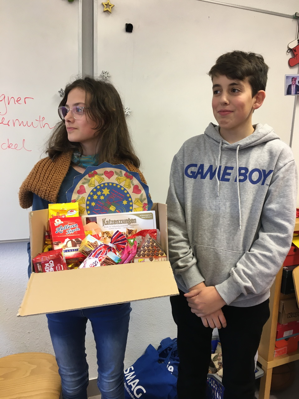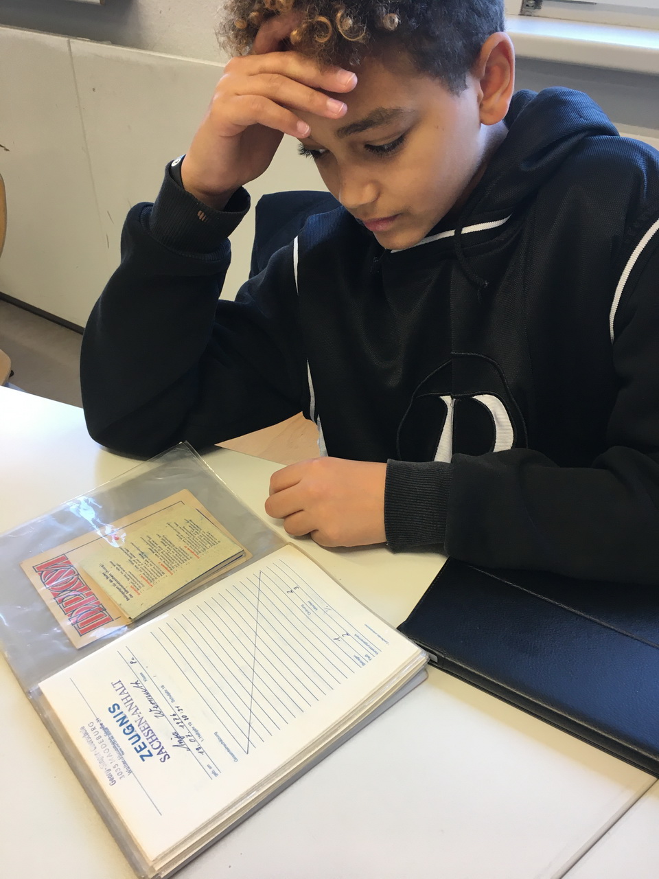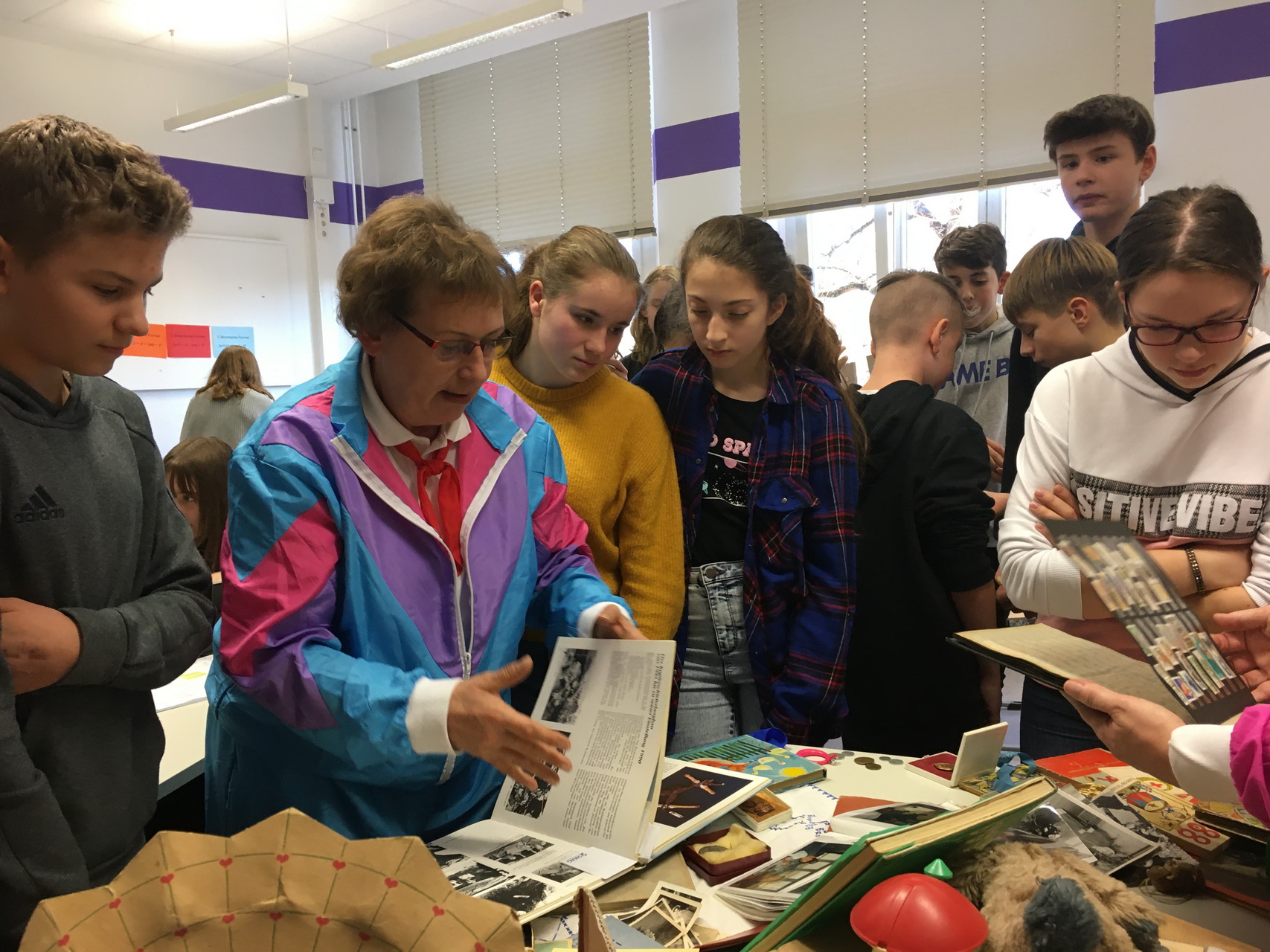 In diesem Zusammmenhang kamen wir u.a. dem Thema 30 Jahre Mauerfall näher und untersuchten Identitätsgeschichten, Rollenbilder und auch geschichtliche Hintergründe. Wir hatten uns vorher Fragen ausgedacht, die wir an unsere Zeitzeugen hatten, hier spielte natürlich eine Rolle, wie alt die Befragten zum Zeitpunkt des Mauerfalls waren: 20,13 und 34 Jahre waren sie. Sie erlebten ihre Vorbilder und Prägungen in ihrer Jugend sehr unterschiedlich, natürlich auch aufgrund der Tatsache, dass die beiden Damen im Ostteil von Deutschland aufwuchsen und dort nicht in Freiheit und Demokratie leben konnten, wie wir das heute so selbstverständlich können. Wir saßen in unserer Klasse und unsere 1,5 Stunden vergingen sehr schnell, es wurde emotional, spannend aber auch lustig. Zum Abschluss zeigten uns unsere Zeugen typische Ostprodukte, Ausweise, Medaillien, Zeugnisse, alte Schulbücher und viele andere Erinnerungen aus der DDR-Zeit, die sie nicht nur mit schönen Erinnerungen verbanden. Das war ein wirklich interessanter Tag mit Hochs und Tiefs, wir danken sehr, dass wir das alles live erfahren durften!