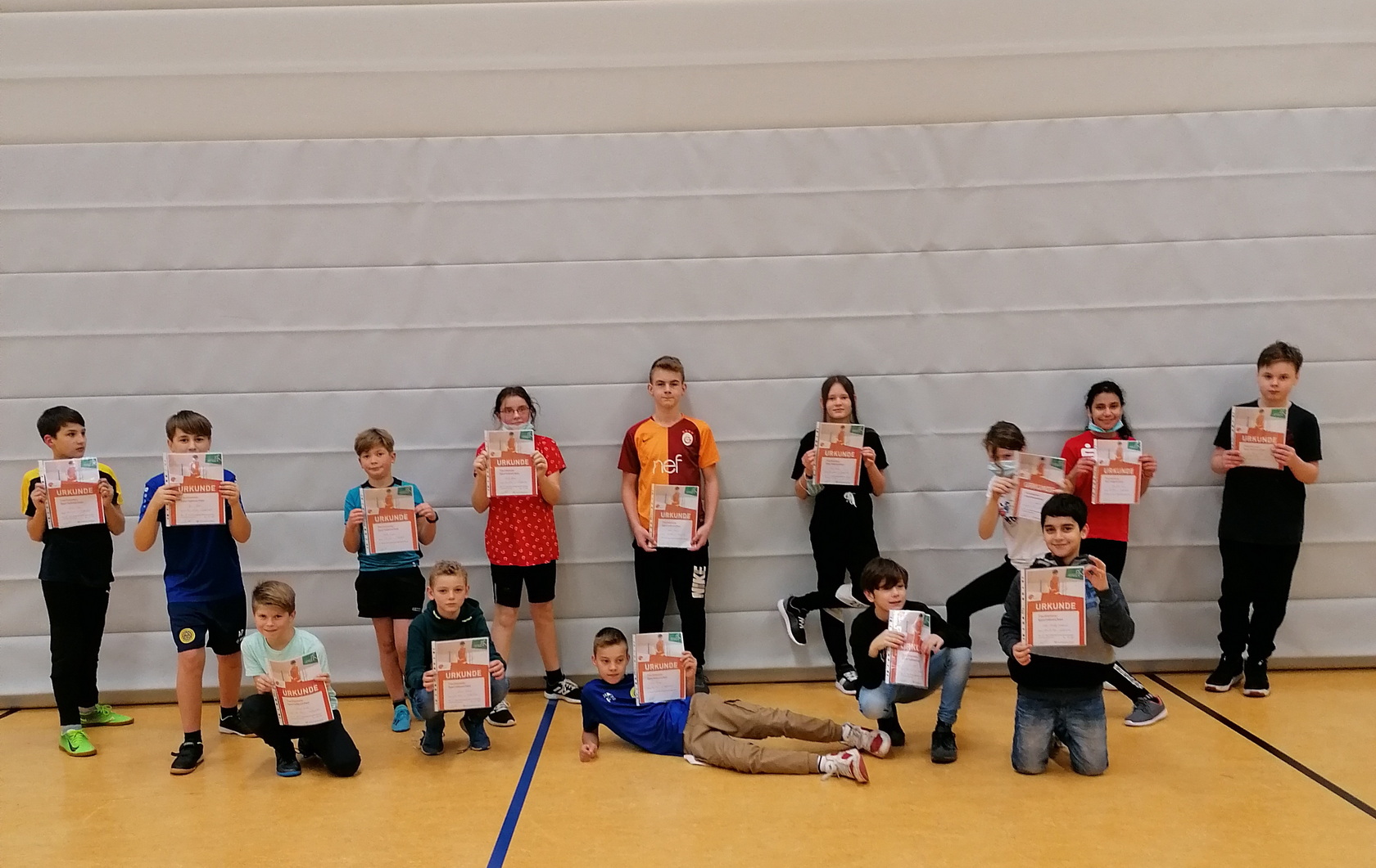 das Tischtennis-Sportabzeichen. An sechs unterschiedlichen Stationen hieß es unter Beachtung der Hygieneregeln sein oder ihr Talent mit dem kleinen Plastikball unter Beweis zu stellen. Zielübungen beim Aufschlag, Gefühl beim Hochhalten des Balles oder Wendigkeit beim Stangenparcours – die Anforderungen waren vielfältig. Aber dennoch haben 90% aller Teilnehmer eine Urkunde erhalten und können zurecht stolz auf ihre Leistung sein – Daumen hoch!