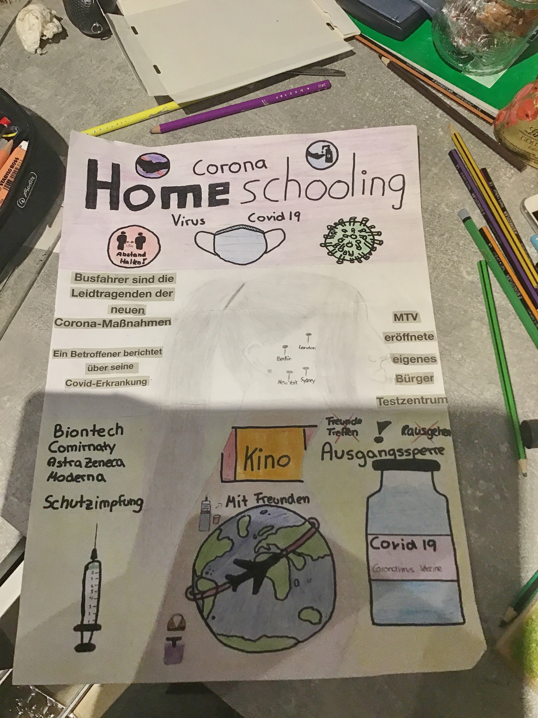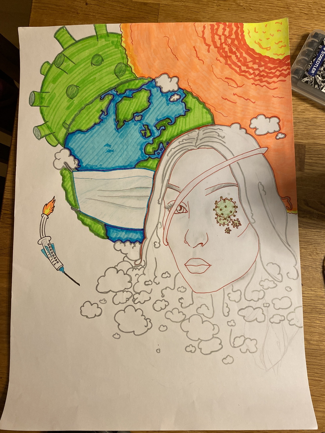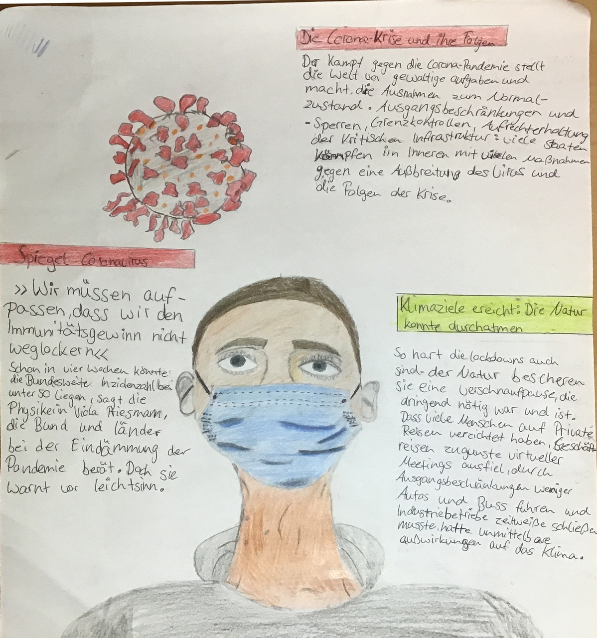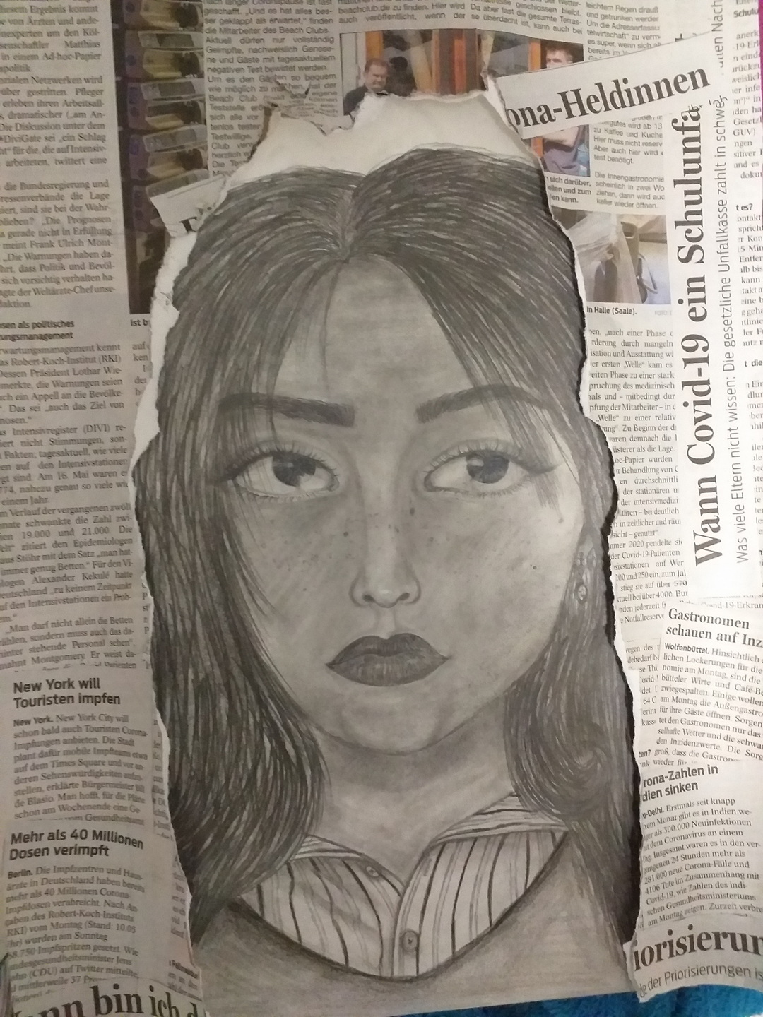 Zu diesen Fragen haben Jugendliche der Klassen 9.1 und 9.4 im Rahmen eines Homeschooling-Kunstprojekts /B-Szenario Selbstportraits (Thema 2Menschendarstellung“) gestaltet, die ihre Gefühlslage nach einem Jahr Corona wiedergeben. Dabei probierten sie verschiedene Collage-und Mischtechniken aus, die meisten von ihnen analog. Angelehnt an: artsetc