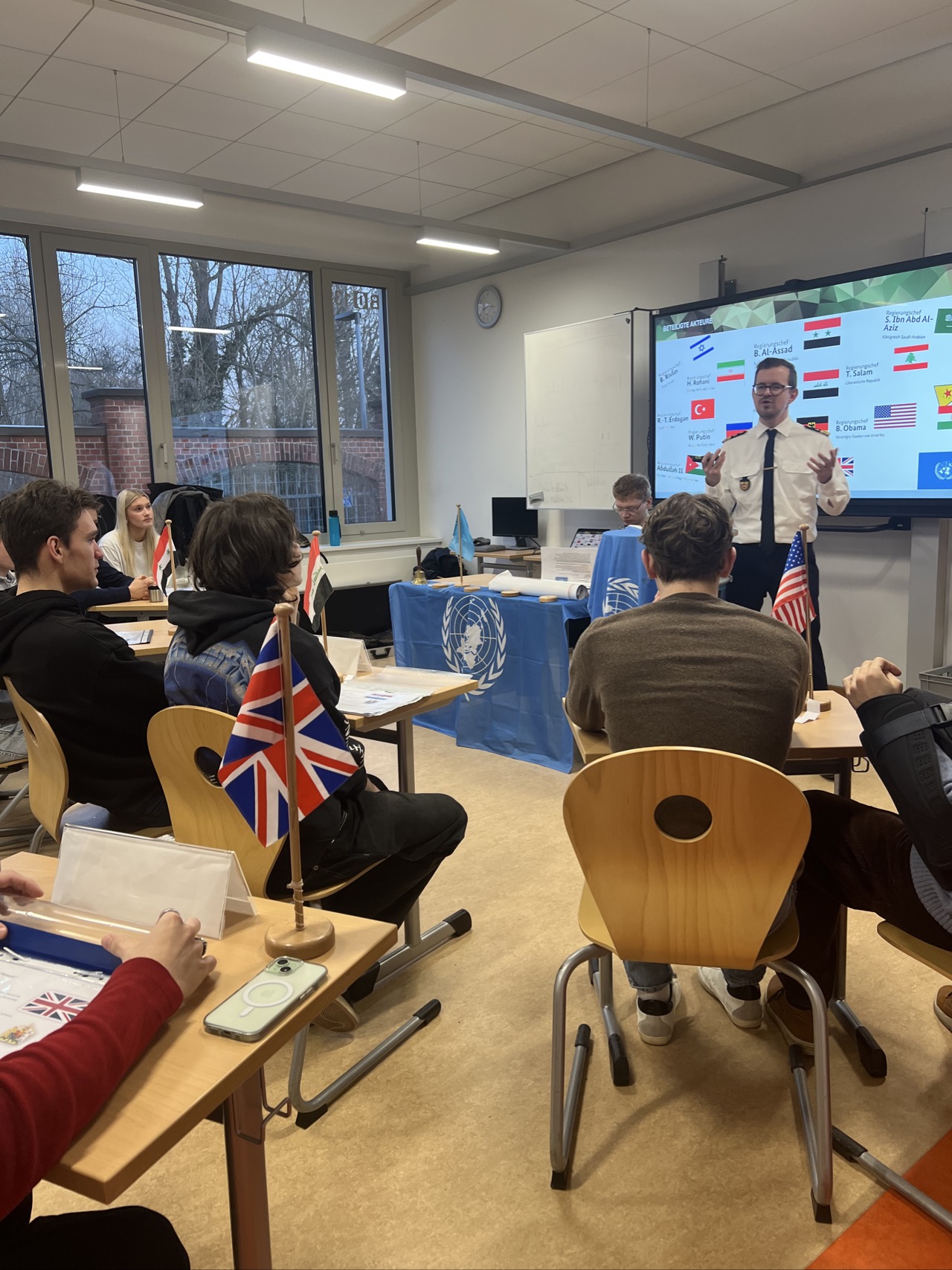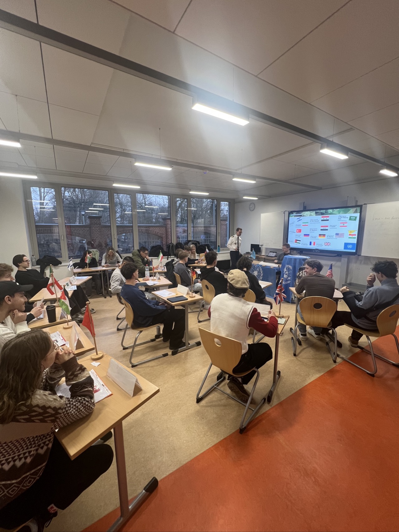 In einer realitätsnahen Simulation der United Nations vertraten die Teilnehmenden unterschiedliche Staaten und arbeiteten sowohl in der Generalversammlung als auch im Sicherheitsrat an politischen Lösungsansätzen. Dabei mussten nationale Interessen abgewogen, Positionen vertreten und gemeinsame Entscheidungen ausgehandelt werden.